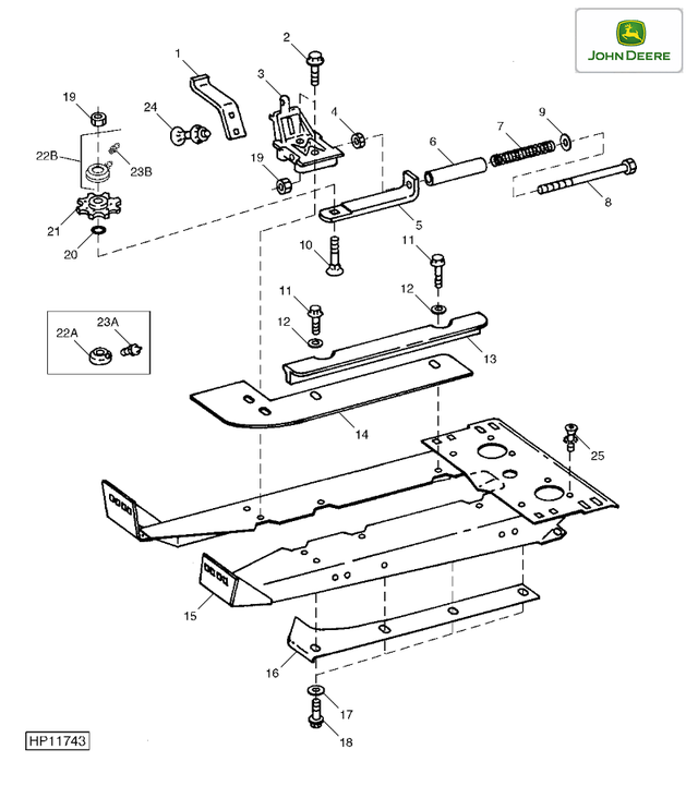 | 23A | JD7797 | Lubrication Fitting | 2 | X | X | (USE WITH H105622) | |