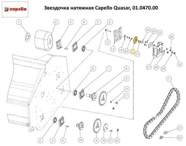Звездочка натяжителя цепи кукурузной жатки Capello Quasar, 01.0470.00