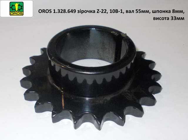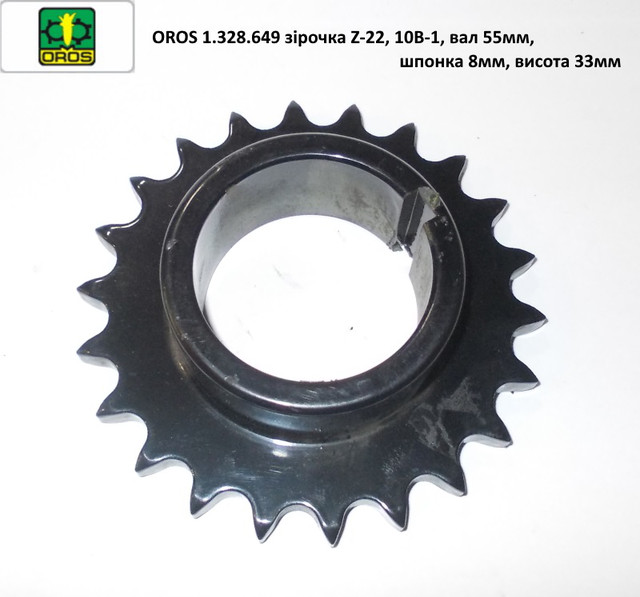 Зірочка Z-22, h-33 мм d-55 мм, під ланцюг 10B-1, шпонка 8 мм, OROS, 1.328.649