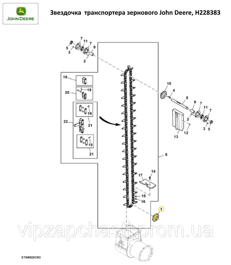 Звездочка Z-10 нижняя елеватора зернового John Deere, H228383