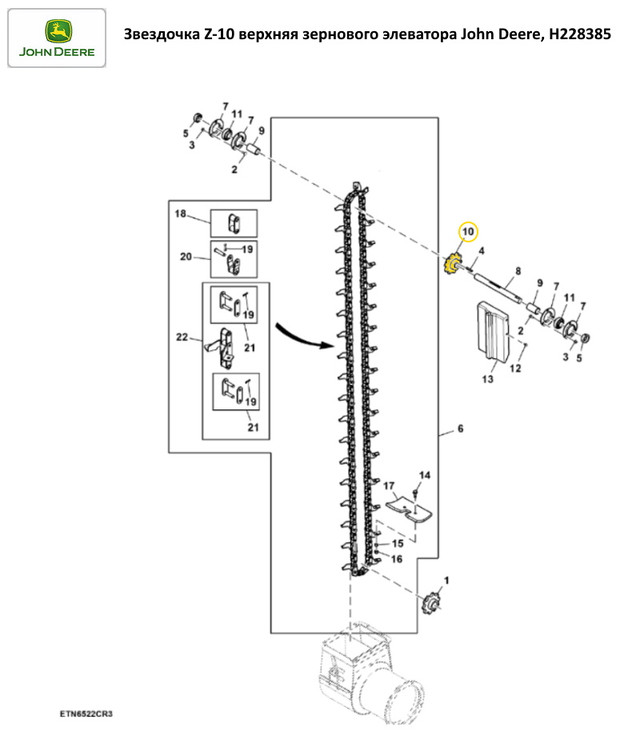 Звездочка Z-10 верхняя зернового элеватора John Deere, H228385