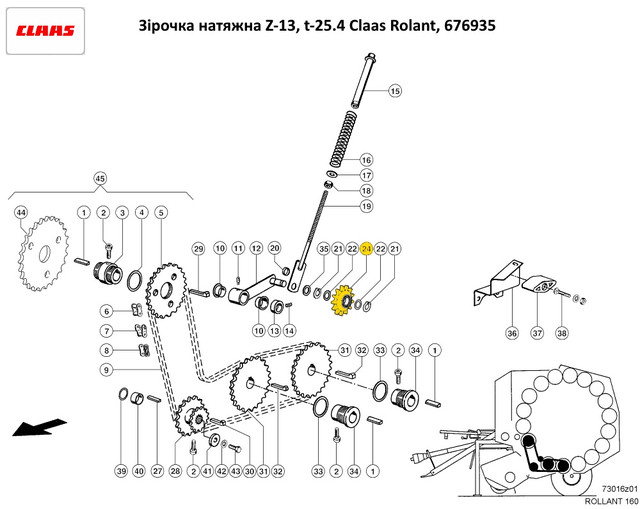 Зірочка натяжна Z-13, t-25.4 Roland Claas, 676935