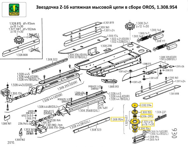Звездочка Z-16 натяжная мысовой цепи в сборе OROS, 1.308.954