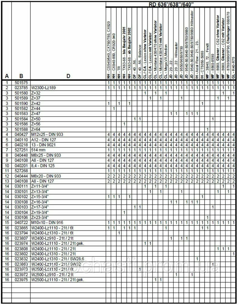 применяется на Geringhoff Mais Star SC