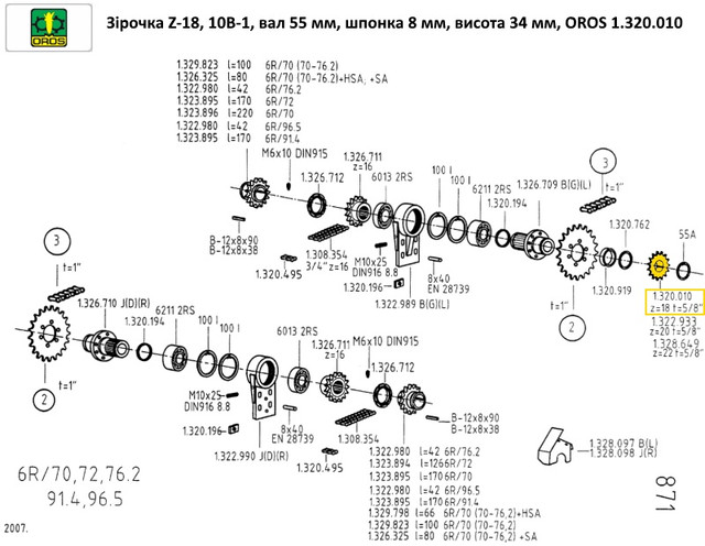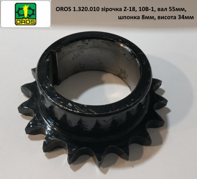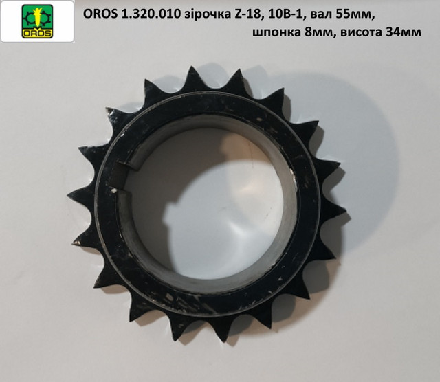 Зірочка Z-18, 10B-1, вал 55 мм, шпонка 8 мм, висота 34 мм, OROS 1.320.010
