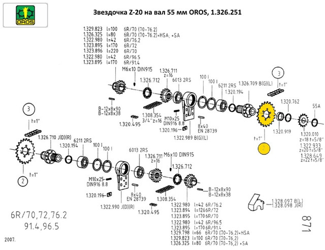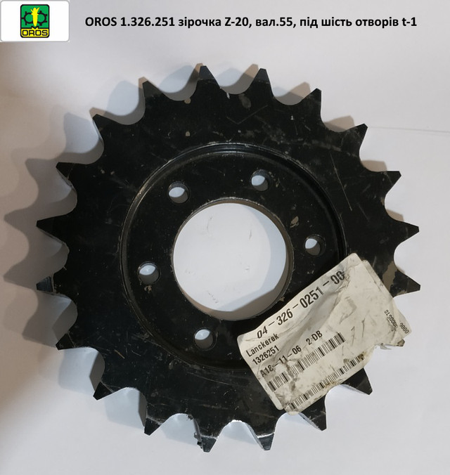 Зірочка Z-20, вал.55, під шість отворів t-1 OROS, 1.326.251