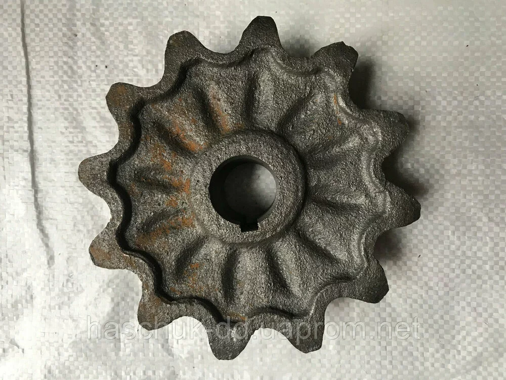 Звездочка Z=12 t=38.0 редуктора питателя зернометателей ЗМ-60, ЗМ-80, а также ЗМ-100.